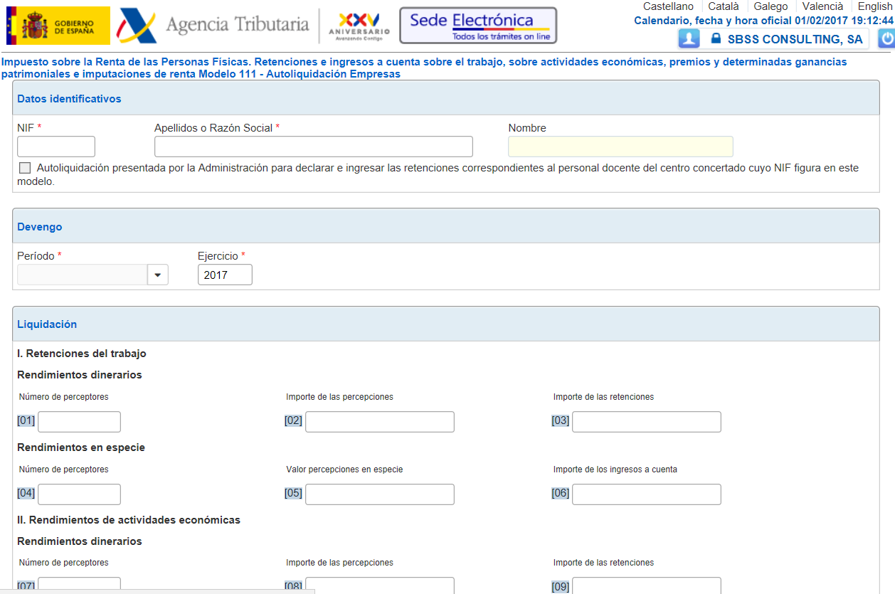 • Cálculo y presentación telemática del modelo 111 para el ejercicio 2017.