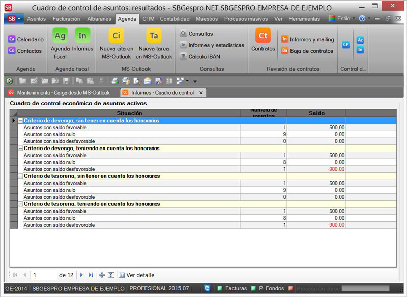Facturación en varios formatos -minutas, ventas de productos, anticipos de honorarios, facturación por trabajos realizados y ventas de inmovilizado-.