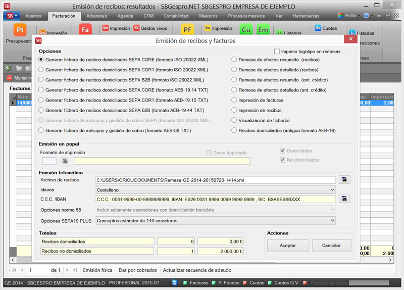 Emisión de recibos según las normas SEPA (TXT y XML) y de anticipos de crédito norma AEB-58.