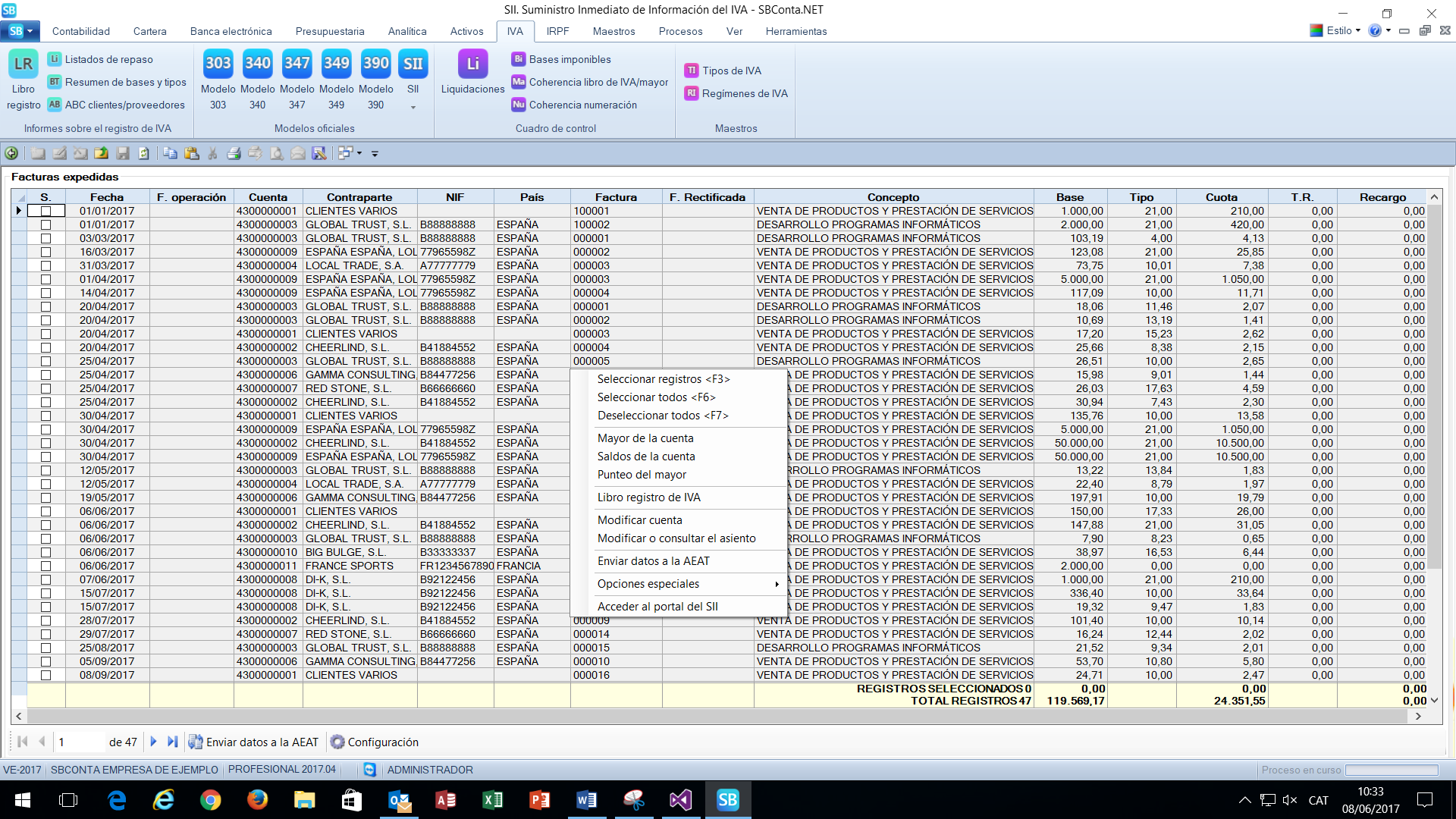 • El cálculo realizado en la opción "IVA-SII-Control de coherencia" finaliza con un error cuando el número de facturas presentadas en SII es suficientemente grande.